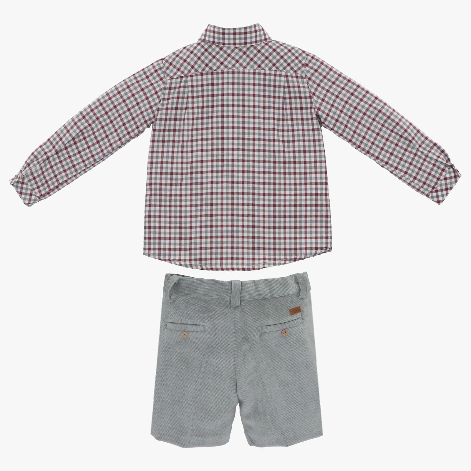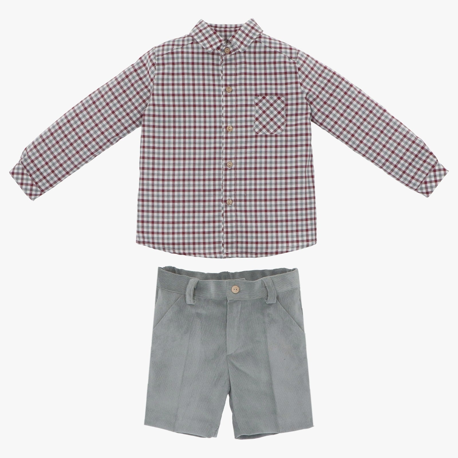 Hermoso conjunto para niño con camisa de cuadros y pantalón corto, perfecto para un evento casual