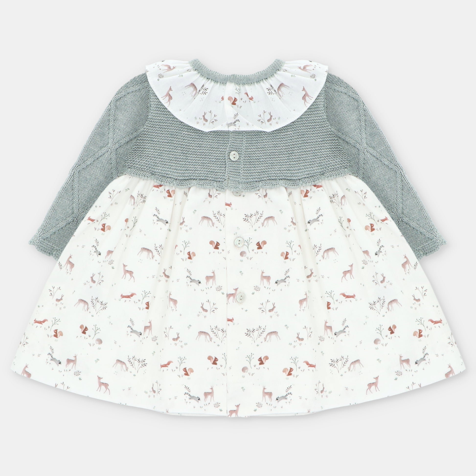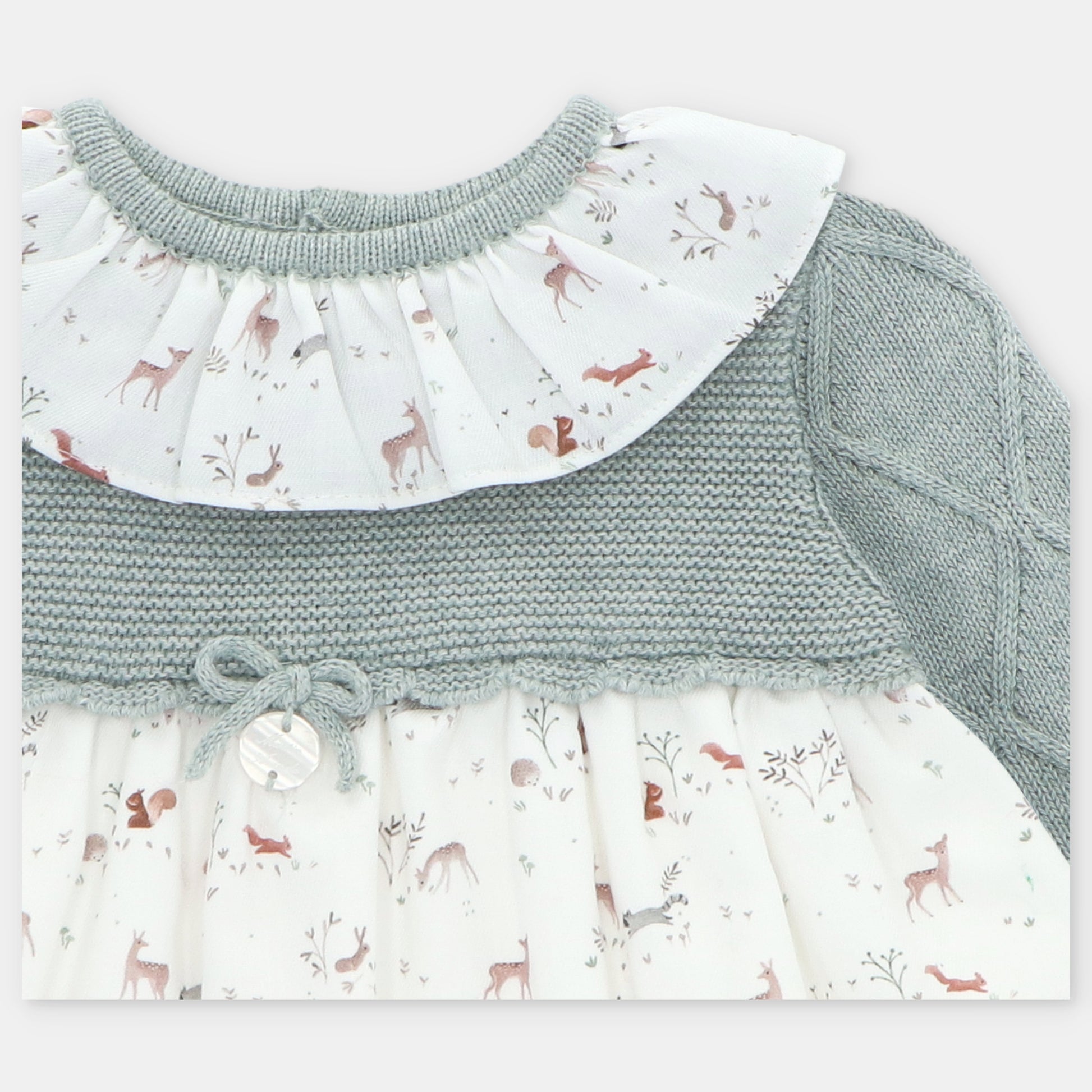 Vestido estampado de punto y tela color verde claro.